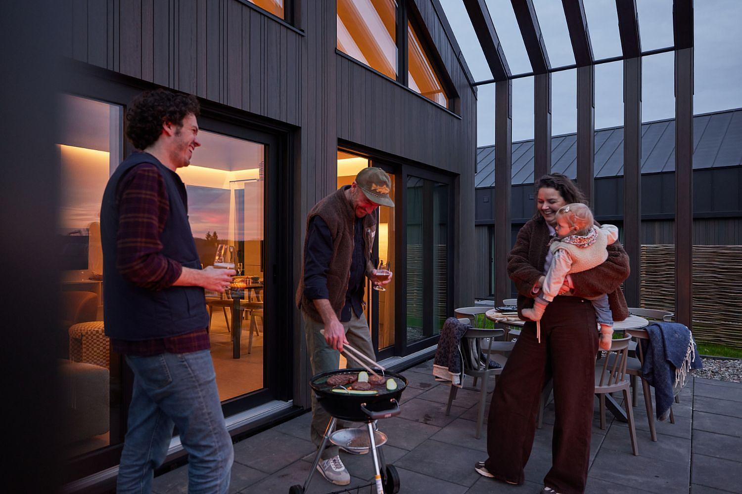 Reservieren Sie Ihren Grill an der Rezeption und genießen Sie köstliche Leckereien vom Grill. Winterliche Gemütlichkeit auf der Terrasse Ihrer Lodge!