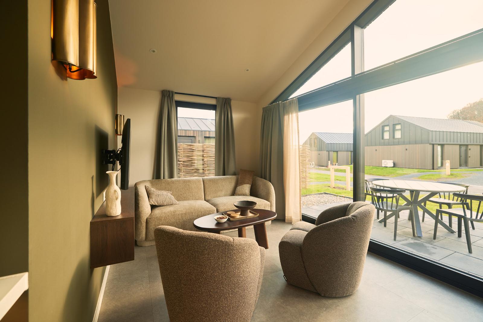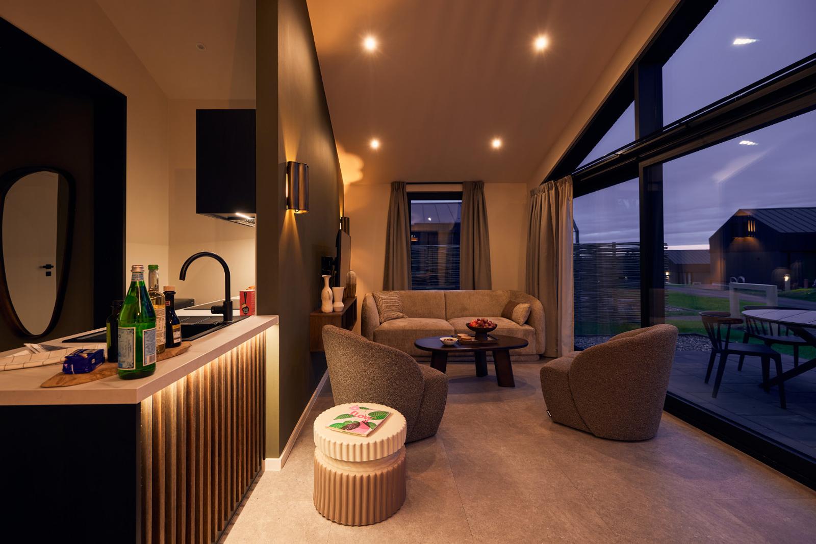 Die Inneneinrichtung der 4-Bett Eco Lodge wurde mit viel Liebe zum Detail gestaltet und ist von den Farben der Natur inspiriert. Natürliche Materialien wie warmes, dunkles Holz und warme, robuste Stoffe schaffen eine warme und einladende Atmosphäre. Die runden und organischen Formen der Möbel verleihen der Einrichtung ein beruhigendes Element, in dem Sie sich sofort wohlfühlen. Große Fenster lassen das Licht und die Aussicht herein, so dass Sie die Schönheit der Natur auch drinnen erleben können.